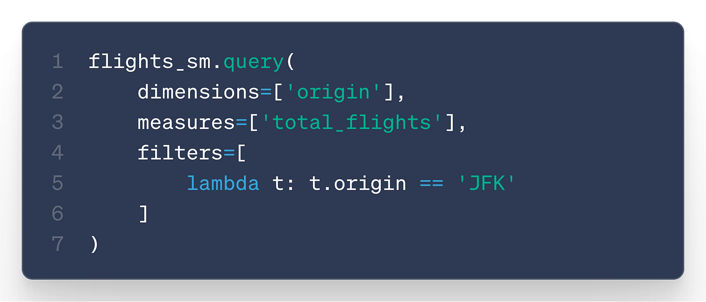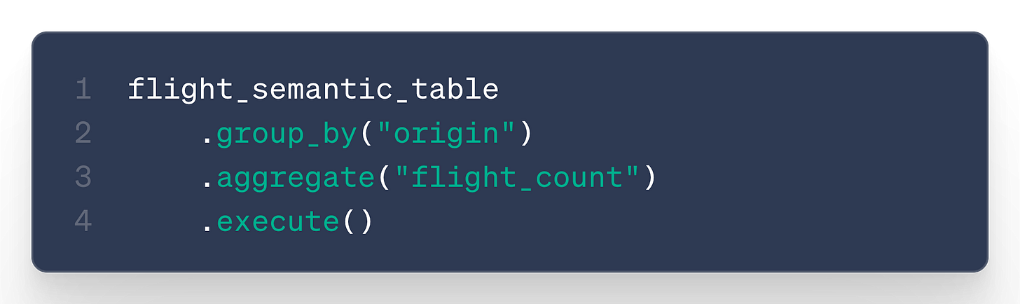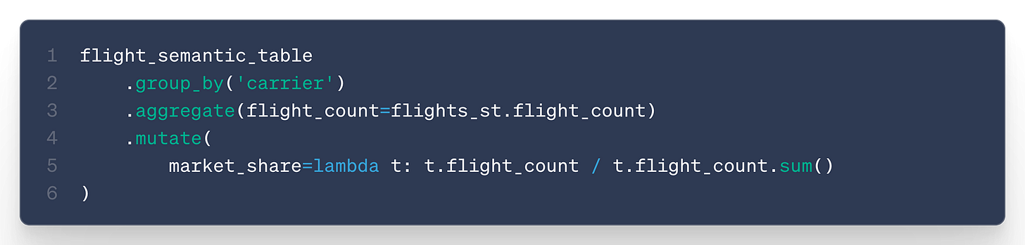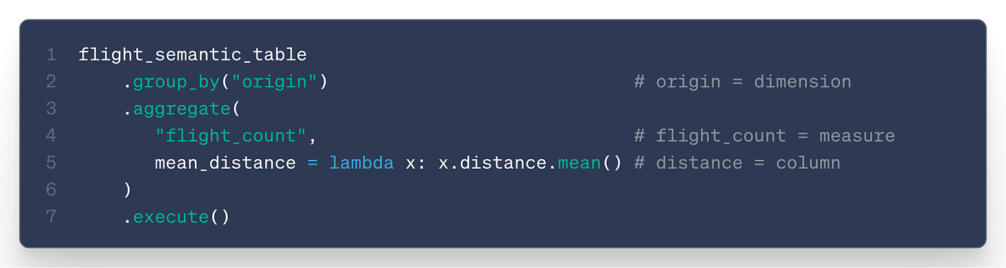 Querying your semantic model now feels like a regular Ibis query, but with a semantic layer: