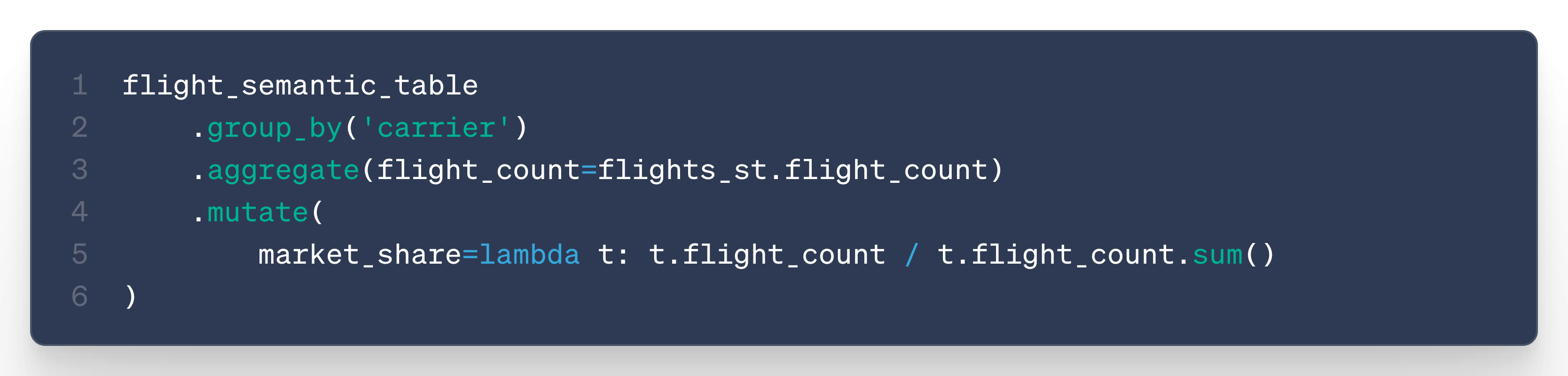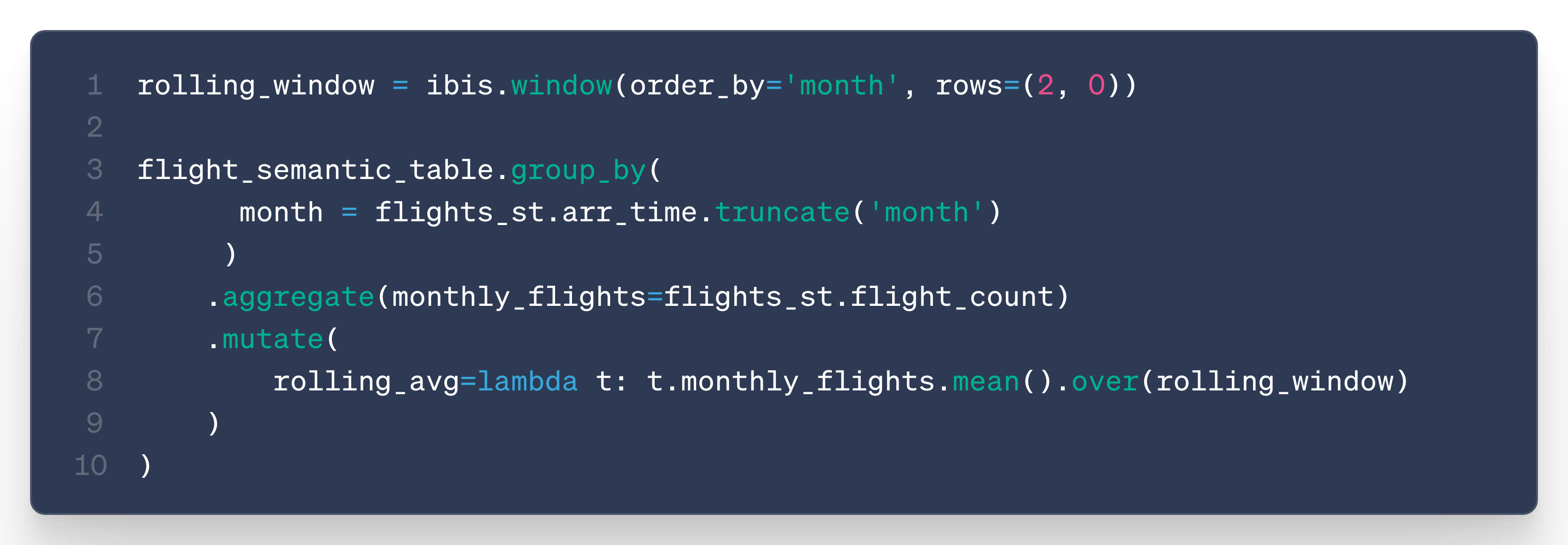 Additionally, this enables the use Ibis’s mutate() method, which allows post-aggregation and unlocks the following use cases: