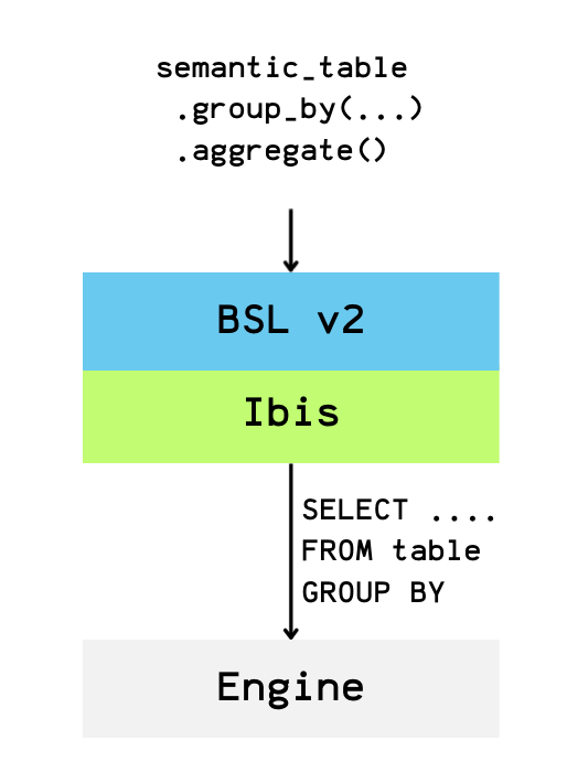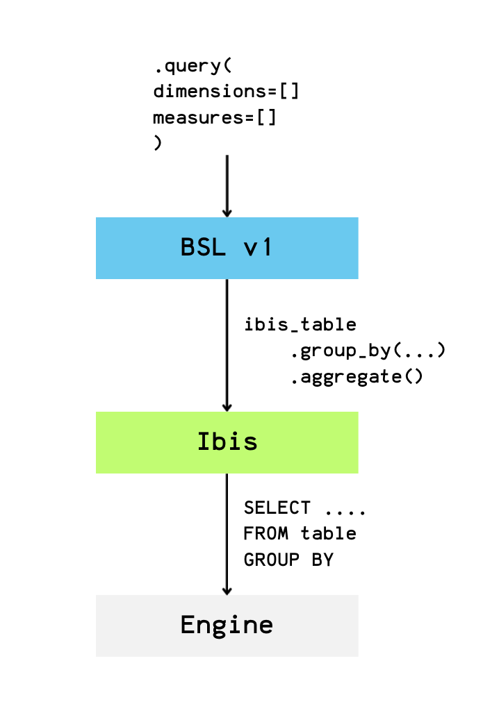 In BSL v1, the semantic layer was essentially a query endpoint that sat on top of the Ibis graph without integrating into it.