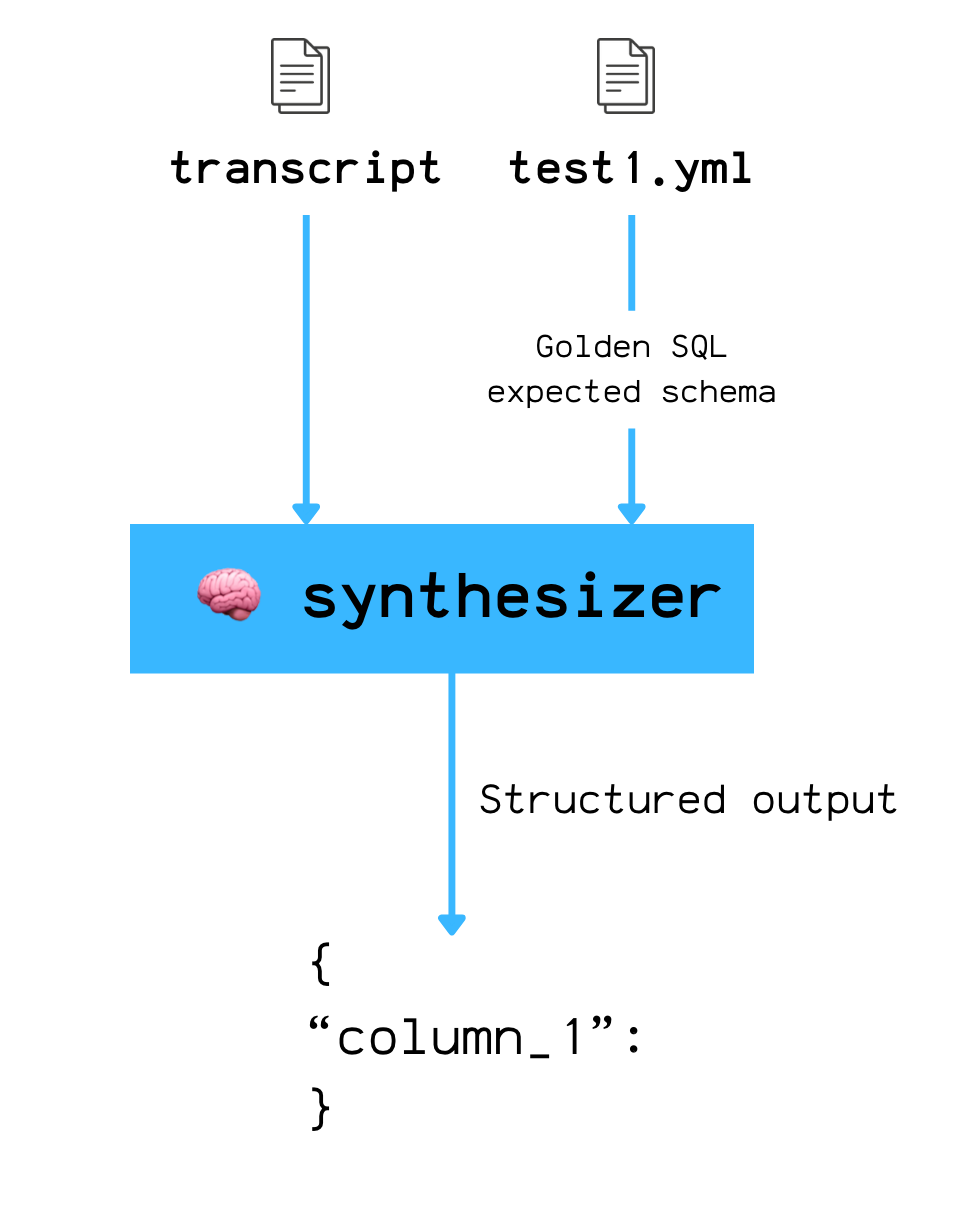 normalizes it with a synthesizer (more on that below) which converts the answer into a structured list of records and sorts it consistently by rows and columns