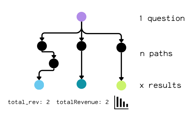 An agent can issue multiple queries, structure them differently (different CTEs, different aliases), or reach the same answer through different intermediate steps.