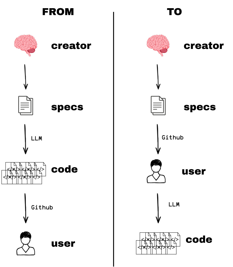 Previously, as consultants or entrepreneurs, we delivered value through code and implementation. Now, perhaps the leverage shifts toward delivering specs — not the software itself.