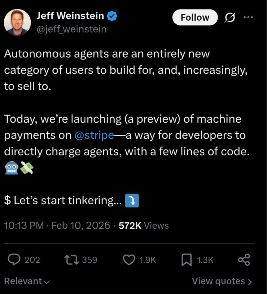 To illustrate this: Stripe is moving in that direction and has released an agent charging feature.