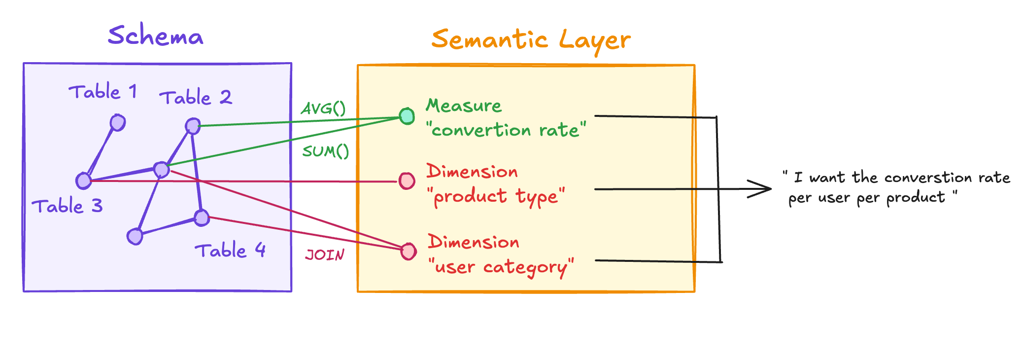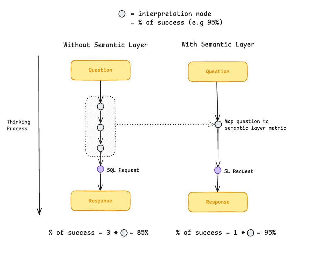 That’s what a semantic layer is: predefined routes and hard definitions for your metrics.
