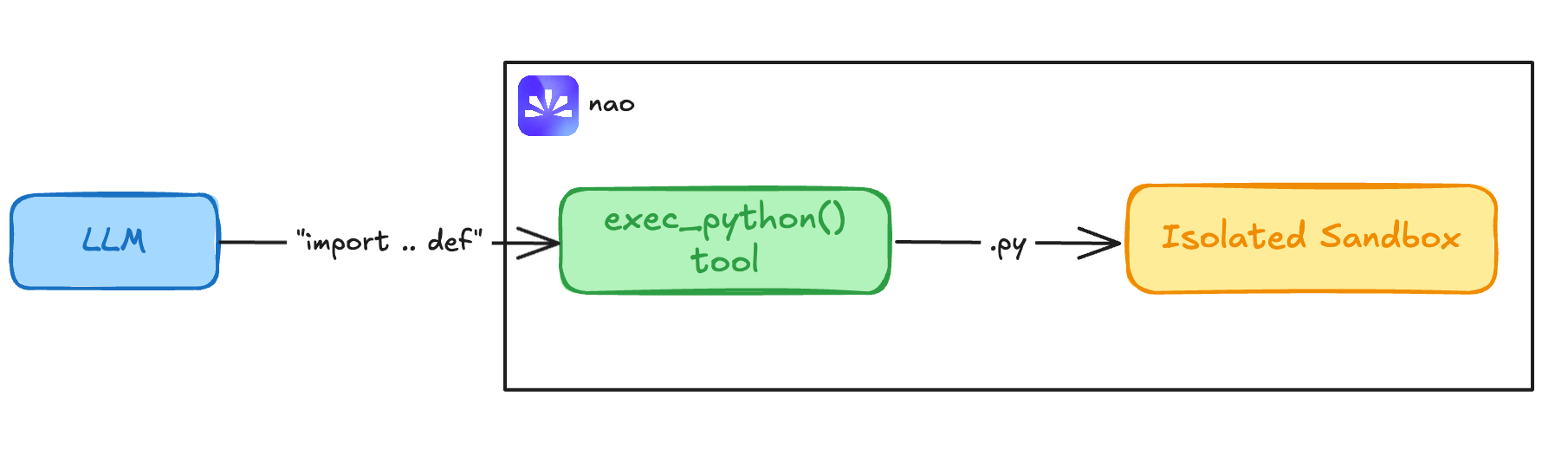 With nao’s sandboxes, the agent can safely run BSL queries in a safe runtime—no raw eval().