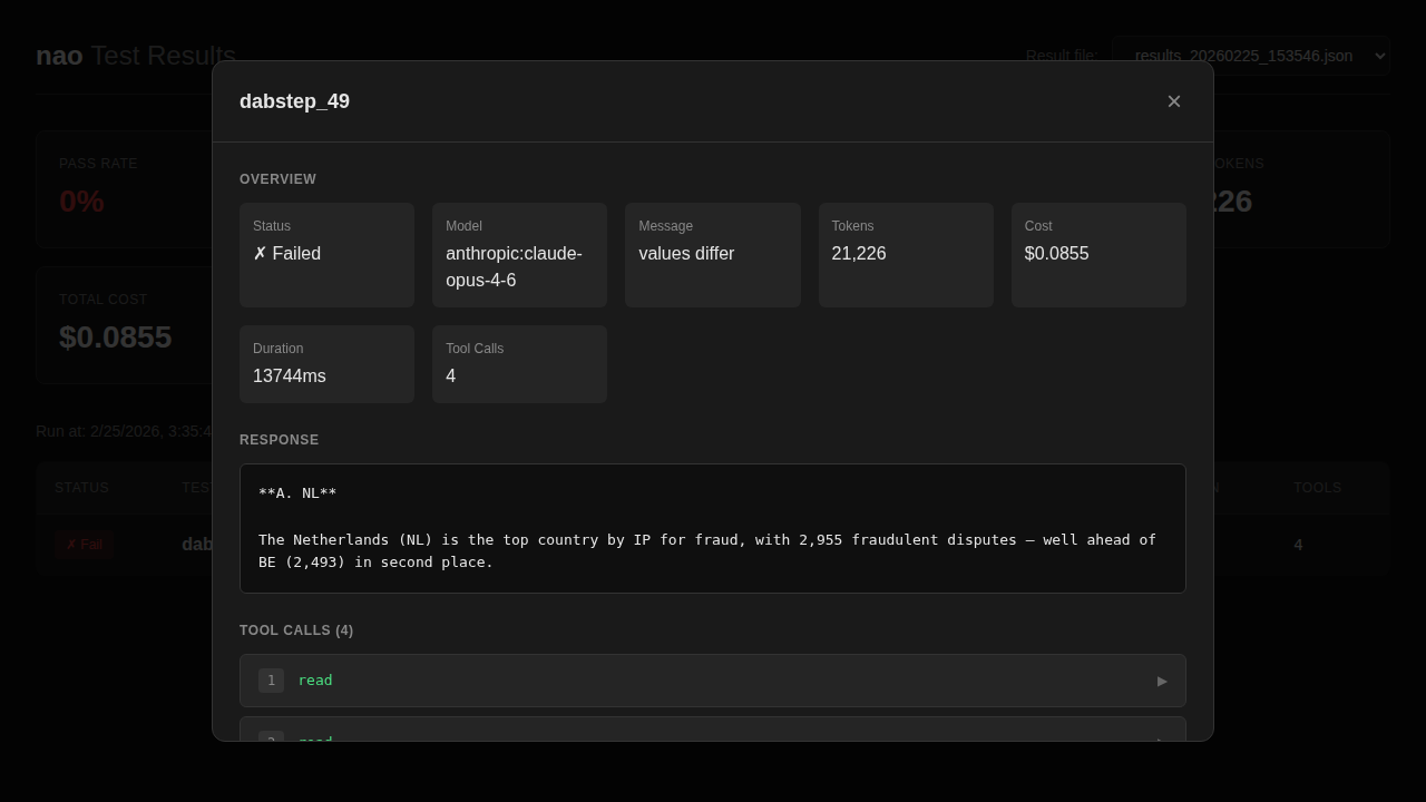 To do that, I used Nao’s UI, which makes it easy to inspect the agent’s tool calls and reasoning step by step.