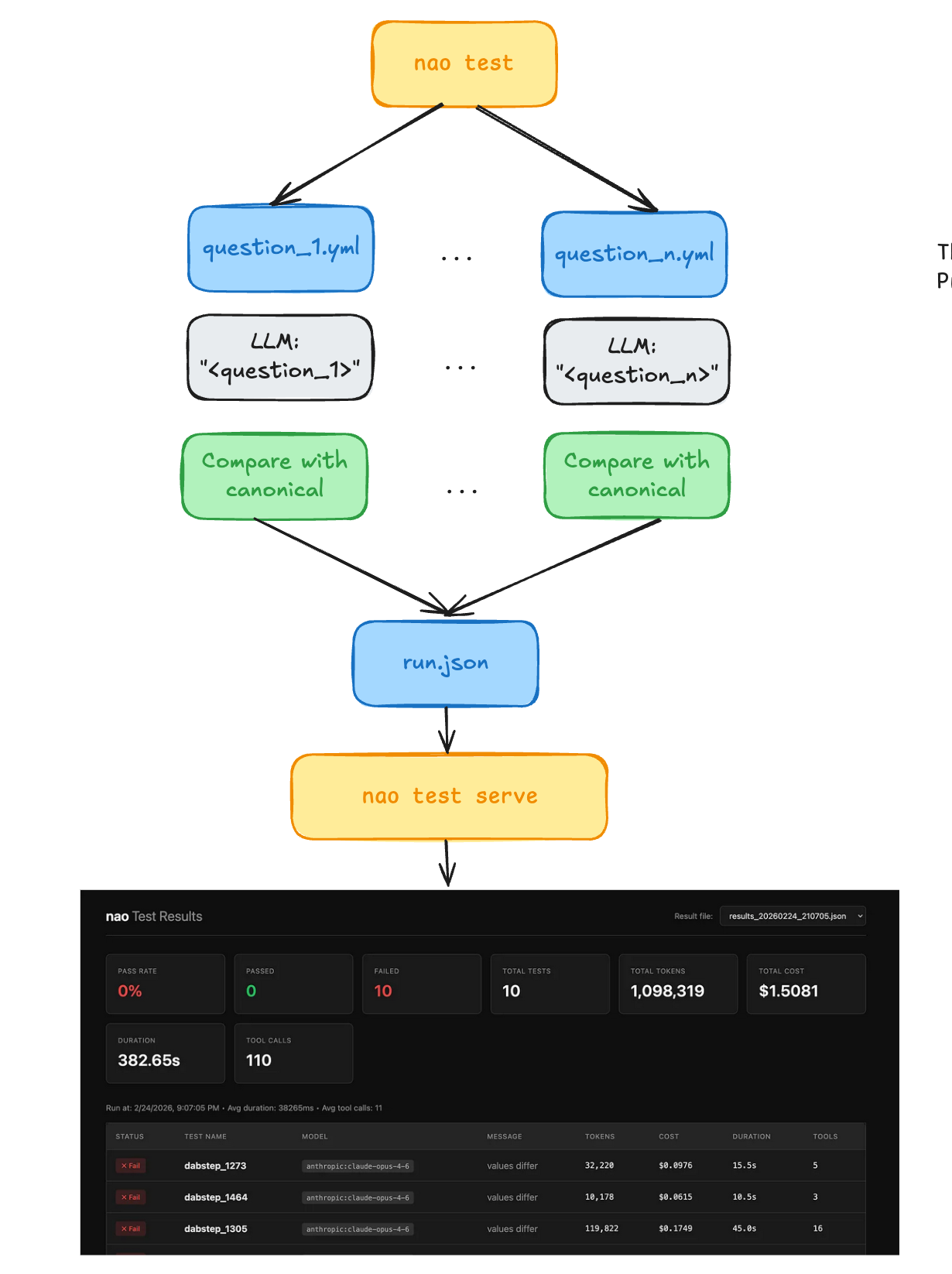 The advantage of tools like Nao is that this process becomes reproducible and easy to plug into CI. You can run the test suite on every context change—every RULES.md update, every new column description, every doc tweak—and catch context drift the same way you prevent code regressions.